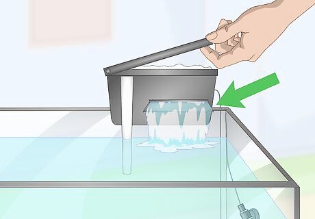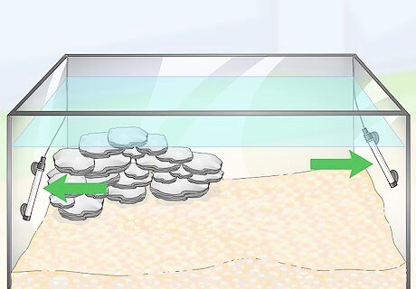 Set up a high-flow filtration system for your fish. You will likely need 2 external canister filters. Each filter will come with a flow rate, and you need about 400 gallons (1,500 L) of water per hour in a 100 gallons (380 L) tank. Clean 1 filter each month, going back and forth between the 2. The materials that come with your filter will tell you how to clean your particular model. It's also a good idea to cycle your fish tank before adding too many fish, as that will allow the aquarium time to develop the right balance of bacteria. These bacteria will keep nitrites and ammonia low or non-existent.