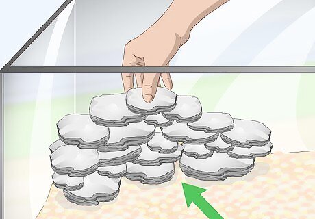 Add at least 1 cave per fish. These fish love caves, but the caves don't need to be complicated. Any small space that has sides and a flat bottom will likely "count" for these fish, including spaces between rocks and other caves. You can even break flowerpots in half and stack them on top of each other to make caves. You can also just pile aquarium-safe rocks in the tank to create caves and crevices. Limestone rocks are a good choice, as they had minerals to the water, making it harder. If you do break flowerpots in half, sand down the rough edges and rinse them thoroughly before placing them in your tank. You can also use structures made for aquariums. You don't need to add plants to the tank, as this species will likely just dig them up.