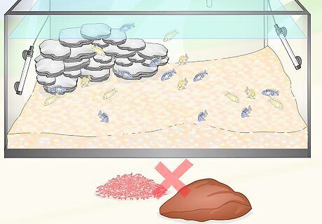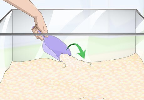 Pour in crushed coral or aragonite for a substrate. These fish tend to burrow down in the gravel, so you want something that's not too harsh. Add 1 to 2 inches (2.5 to 5.1 cm) of this substrate at the bottom of the tank. These particular substrates will add needed minerals to the water, which is why they're a good choice. They make the water harder, and the fish like hard water. You can find them at pet stores, aquarium stores, or online. Rinse the gravel several times with conditioned water before placing it in the aquarium.