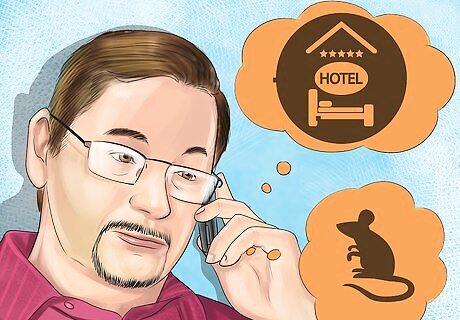 Ensure mice-friendly accommodations. Call ahead to make sure your hotel, motel, or rental will allow you to bring your mice. If you’re going to be staying in multiple locations or are unsure of how long you will be in each destination, keep a list handy of potential pet-friendly places to stay that you can reference on the fly. If you are traveling in a way other than your car, make sure that small pets are allowed on board. Some airlines, trains, or busses may have rules pertaining to animal travel. Call ahead to make arrangements to ensure a safe journey for your mice.