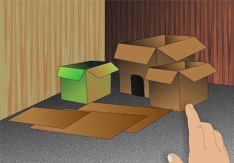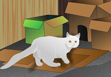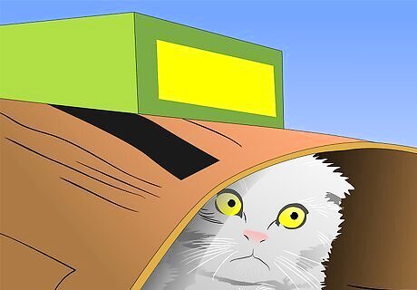 Make sure the room has plenty of cat-friendly hiding places. Cats feel safe if they are protected on all sides but can see out, which is why cats love cardboard boxes so much. Provide a variety of dens, perhaps boxes in different sizes lying on their sides, and make them comfy with the addition of a blanket or fleece.