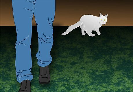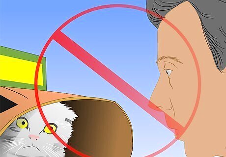 Refrain from making eye contact. Never confront the cat by staring at her in her hiding place. Direct eye contact makes a cat feel threatened because in cat language a direct stare is a challenge of authority. To them, staring is a signal that the staring-cat wants to be boss, and this is the last thing an abused cat needs in a new home, where you want her to feel confident and safe.