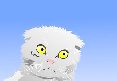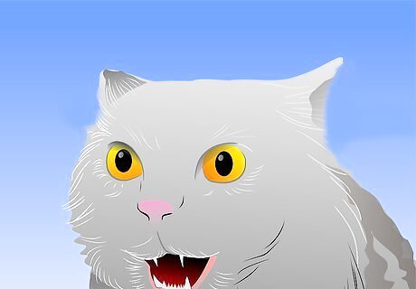 Identify the cat's fears so you can try to avoid them. The rescue agency may give you some idea of the type of abuse the cat suffered. If not, watch how she reacts and what she seems to fear most. Once you have identified what she fears, you can take steps to avoid exposing her to these things. When frightened, her eyes will dilate and the pupils become huge and dark. Her fur may stand on head, and she holds her tail straight and the fur is erect so it looks like a bottle brush. Her ears will go back and flatten against her skull. If she can run away she will likely scuttle away close to the ground, moving quickly. If she feels trapped she will arch her back, hiss and spit.