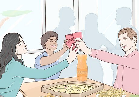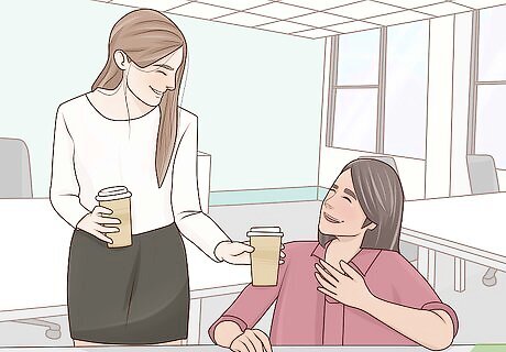 Do a random act of kindness to make a coworker happy. A random act of kindness shows people that you care about them, so it lifts their spirits. Additionally, it can start a chain of random acts. Make a small gesture toward one or more of your coworkers and encourage them to keep the chain going. For instance, you might bring in a tray of donuts for the entire office. As another option, you could buy a coworker a coffee or hand out small gifts, like bubbles or wildflower seeds. If you don’t want to spend any money, do a favor for a coworker or let someone skip in front of you when you’re getting coffee in the break room.