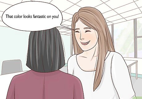 Compliment a coworker to brighten their day. Being kind to someone is a fast, easy way to boost their mood. Focus on something positive about your coworker that they have control over, like their outfit or work performance. Then, tell them something nice. You might say, “That color looks fantastic on you!” or “I’m always impressed by the good work you do.” Try to compliment as many people as you can.