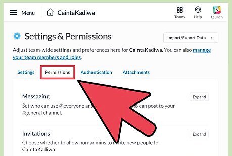 Click the “Permissions” tab. This is located near the top of the page and will display a list of editable app and user permissions. The Member role will have access to most team settings by default. Most of these settings are for removing access to these features.