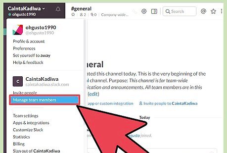Select “Manage Team Members”. This will take you to the admin page with a list of all the members of your team. This option will only appear if you are a team admin. You can also access this page by going to https://[teamname].slack.com/admin in your web browser.