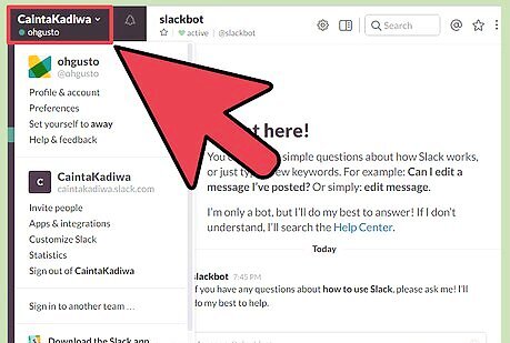 Open the team menu. This is your team name displayed in the upper left. The menu will display a list of account a team options. If you are signed in from a previous session, a list of your teams will appear in the upper right when navigating to https://slack.com in a web browser.