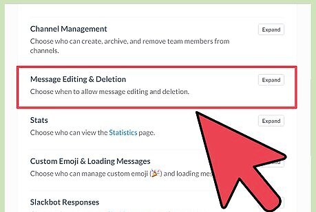 Change message deletion permissions. Click “Message Editing & Deletion” to expand. A dropdown menu will appear allowing you to restrict message deletion to only Admin and Owner roles.