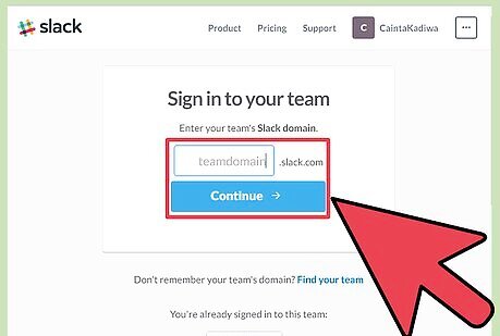 Sign in to your account. Enter your team domain and press “Continue”. Then, enter your email and password and press “Sign in”. The team domain is setup by the team administrator and is formatted like: [teamname].slack.com.