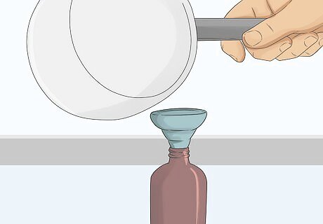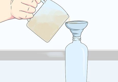 Allow the tea to cool completely and pour it into the spray bottle. Be sure to allow the water to cool completely first. Use a clean, empty spray bottle. A funnel might help you transfer the tea into the bottle more easily. Once you’ve poured the formula into the bottle, replace the nozzle tightly to close it.