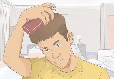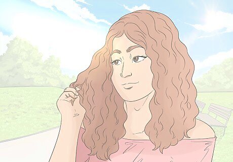 Start at the tips and massage the coconut oil into your hair. Measure out 1 tablespoon of coconut oil and apply it to your hair. Starting at the ends, work the oil about halfway up your hair and then stop. The oil will provide a dose of moisture to your hair and also attract sunlight with its sheen. You can substitute 1 tablespoon olive oil for the coconut oil, if you prefer.
