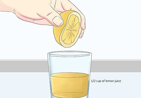 Juice the lemons until you have 1/2 cup of lemon juice. Pour the 1/2 cup of lemon juice into the clean spray bottle. You may want to use a funnel for a hassle-free way to transfer the liquids into the bottle.