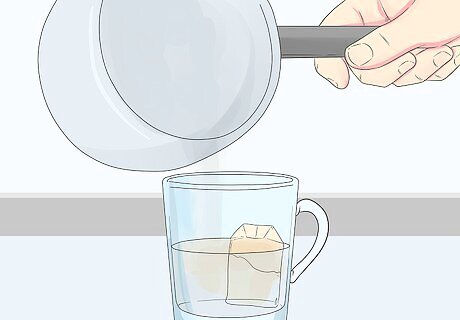 Boil 1 cup of water and pour it over the chamomile tea bag. Put the chamomile tea bag in an ordinary mug and pour the boiling water over it. Soak the tea bag in the water until it has cooled to room temperature (which will take about 30 minutes). The result will be a strong brew of chamomile tea. Take the bag out of the water and throw it away after the 30 minutes have passed.