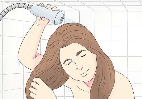 Rinse the solution out and condition your hair. Use warm water to rinse the mixture out and do not use shampoo. Once you’ve rinsed out the lemon juice, apply conditioner generously to your hair and allow it to stay on for 2-5 minutes before rinsing it clean. Lemon juice is very drying to the hair, so make sure you keep your hair well-conditioned to avoid brittle strands. Consider using leave-in conditioners to protect your hair from over drying.