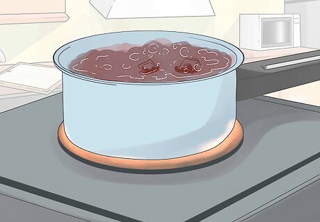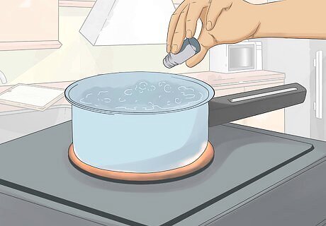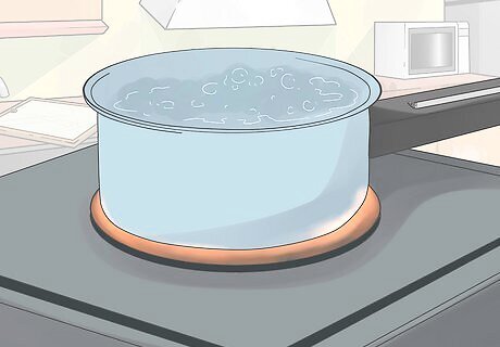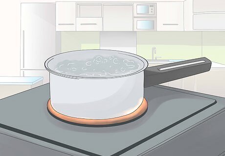 Bring the purified water to a boil in a saucepan. Measure out 2 cups of purified water and boil it on the stove in a saucepan. Turn off the heat once the water has reached the boiling point. Once the water stops boiling, it will be steaming and ready for the next step.