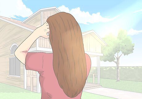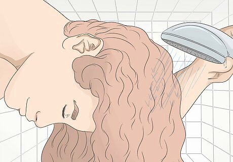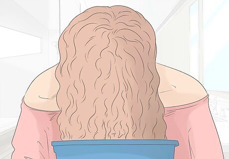 Head outside and expose your hair to sunlight. Make sure that your hair is hanging loose and not pulled back into a ponytail to ensure even sun exposure. The sunlight works with the ingredients to lighten your hair. Stay out in the sun until your hair is completely dry. Once your hair dries, it will be stiffened by the lemon juice. This is normal and will rinse right out.