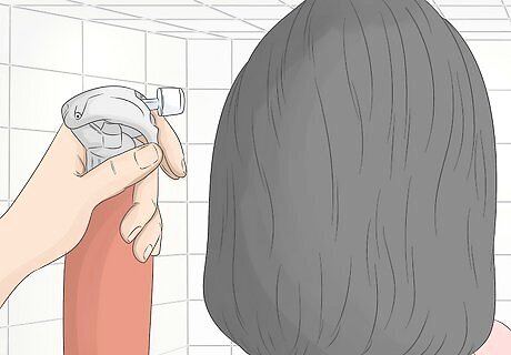 Saturate freshly washed hair with the lightening spray. Shampoo your hair (but do not condition it) and then towel-dry it. Spray the formula all over your wet hair until the strands are fully saturated. Run a comb through your hair to make sure the formula is evenly distributed. To achieve an ombre look, spray the mixture on the ends of your hair only. For a more dramatic ombre look, spray it on the bottom half of your hair. Spray additional amounts of the formula on places where you want brighter, targeted highlights.