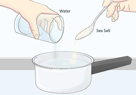 Pour the water and sea salt into a saucepan. Measure out 1 cup of water and 2 tablespoons of sea salt and put them both in the saucepan. Heat (do not boil) the mixture on your stove and stir it a few times until the salt has dissolved completely. Allow the solution to cool to room temperature and then add this solution to the lemon juice that you've already measured out and put in the spray bottle.