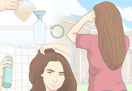 Spray the mixture on hair that is clean and dry. You can spray it evenly all over your hair or, if you prefer targeted highlights, concentrate the spray on those individual sections of hair. Run a comb through your hair to make sure the formula is evenly distributed.