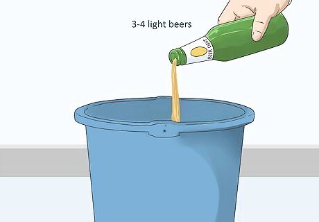 Pour 3-4 light beers into a clean bucket. The brand of beer you use doesn’t matter, nor does the quality of the beer, so this is a fairly affordable solution for lightening your hair. If you want to avoid smelling like alcohol, use flat beer for this. The beer scent is much less potent when flat.