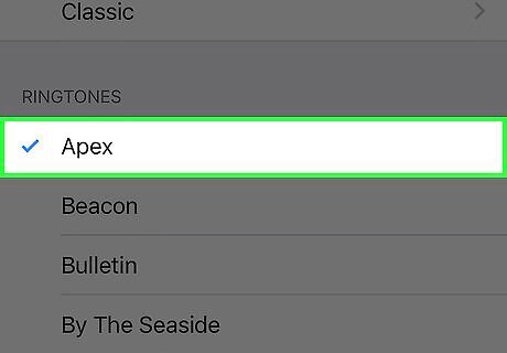 Select a sound. Doing so will set it as your new outgoing mail ringtone. For example, you might select Apex to set the "Apex" ringtone as your sent mail sound.