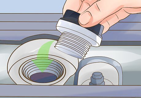 Re-install the oil plug. Once the old used oil has been completely drained out of the oil pan, you will re-install the oil plug. You will start the oil plug by hand until it doesn't turn anymore, then you get the 17mil combination wrench and tighten it to the right but not to tight because you will begin to strip the threads of the oil pan causing it to leak in the future.