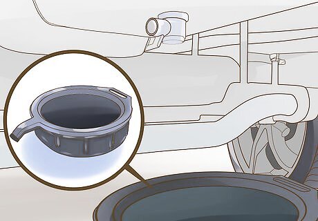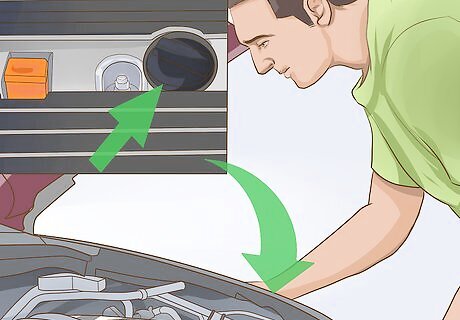 Locate oil cap. Open the cars hood, and locate the oil cap. The oil cap is usually black in color, has a symbol of an oil canister, and usually has what type of oil the car requires. Once you locate the oil cap remove it. Removing the oil cap will make the oil flow out of the oil pan more smoothly because there is no pressure build up.