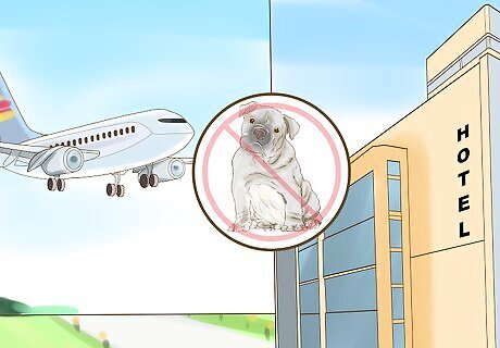 Check businesses when traveling. When traveling with your pet, you may find that certain airlines and certain hotels will ban specific breeds. It's always best to check with the specific company you're traveling with before trying to bring your dog. You don't want to be stuck somewhere with no place to spend the night because your dog can't come in. You also need to check local laws when bringing your pet somewhere. If the city you're traveling in has a ban on your dog, it's obviously not a good idea to bring it with you. Look on the city's website, as well as the state's website, to see if your dog is welcome in that area.