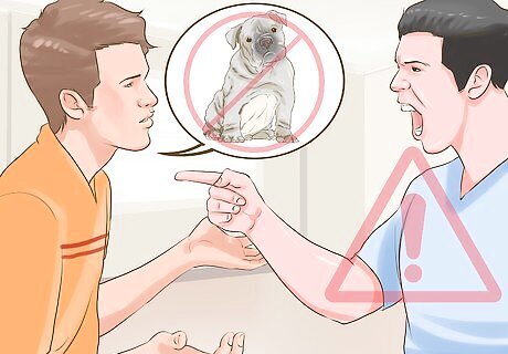 Try not to get angry. Usually, landlords have rules in place because they've been burned in the past. Besides, getting angry won't help. You may be able to persuade a reluctant landlord if you are calm and reasonable, but if you start yelling, you shut down any chances you may have of renting there with your dog.