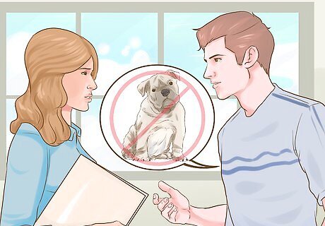 Check with each new landlord. In most areas, landlords can ban any pets they want. You don't have a right to own a certain type of dog on another person's property. Therefore, it's always best to ask about your dog before signing a rental agreement. The landlord may ban certain breeds, and your dog may not be allowed to live there. Most landlords require you to sign a pet agreement. If you don't sign one, you may have more leeway under the law to keep a breed your landlord bans. Keep in mind that some landlords may ban certain breeds out of necessity, due to the insurance they carry.
