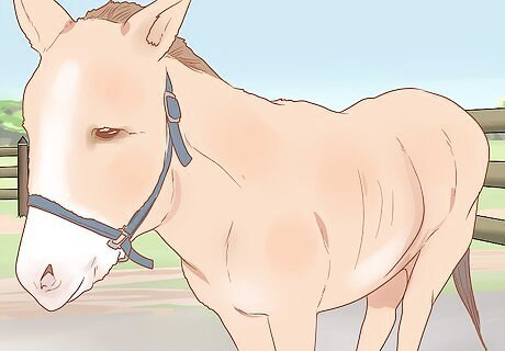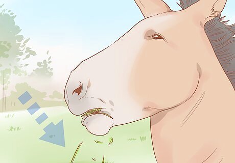 Look for your animal to drop feed or hay while it eats. If your donkey or horse suddenly starts dropping food, it could have a dental problem. Broken teeth, lumps, or toothaches could make eating painful and cause it to change the way it eats. However, you should pay attention to how your animal normally eats, as some animals just naturally drop grain when they eat due to the way their jaw is aligned.