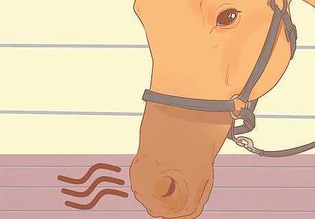 Examine your equine's feces for undigested grain. You don't need to dig through the feces, but when you're cleaning out a stall, check for long stems from the hay or noticeable grains. If you see these signs, that means your equine is having trouble digesting them, which could be due to not chewing them well.