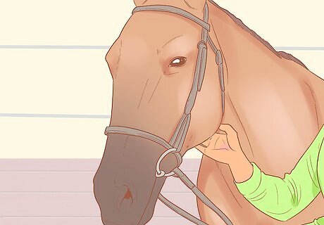 Watch for signs of resistance when your equine is bridled. If an equine is having oral pain, it may not be as cooperative as usual in the bridle. Alternatively, it may be more resistant on one side than the other due to a toothache or abscess on that side. Always pay attention to your equine's behavior and pay attention to the cues it's giving you. In some cases, you might not notice your horse or donkey reacting to pain when you put on the bridle. However, it may start to show signs of pain as soon as you begin your ride. If your equine starts tossing its head or refusing certain commands, it may be in pain.