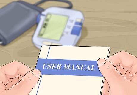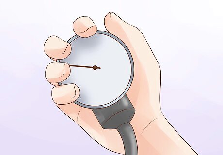 Learn to use a blood pressure cuff. If you want to check your blood pressure at home using a manual pump cuff monitor, you'll need to purchase one and familiarize yourself with it. Most cuff monitors consist of the cuff with a center arrow for proper positioning that wraps around your arm, a gauge that indicates the BP reading, a rubber tube that connects the gauge to the cuff, and a bulb that you squeeze to inflate the cuff. You should be able to purchase one at a pharmacy or medical supply store.
