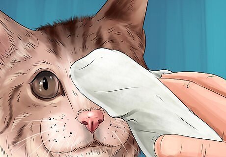Clean your cat’s nose. After examining your cat’s nose, wipe it clean using water and a cloth or cotton ball. Gently brace your cat’s face and wipe its nose as quickly as possible. Follow up by giving your cat a treat to help teach it that this can be a good experience.