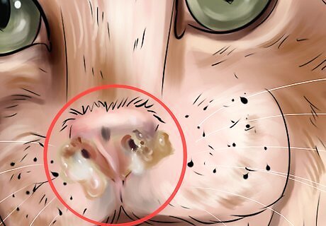 Look for discharge. It is not unusual for cats to have runny noses, but the discharge should be clear. Check for thick, bubbling, or dark discharge (yellow, green, or black), which could be the sign if an infection. If you notice this dark mucus, contact your veterinarian immediately for an exam.