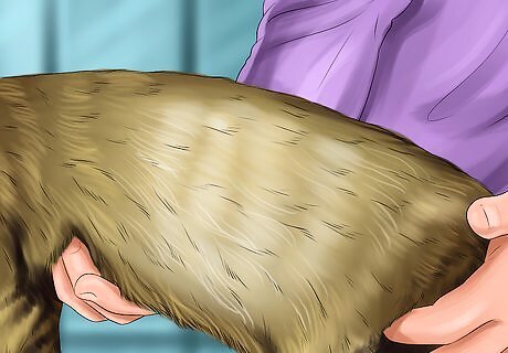 Apply pressure to its torso. Applying gentle, constant pressure to your cat’s torso is a proven way to alleviate anxiety. While examining your cat, have a family member or friend hold your cat firmly, securing its body and putting light pressure on it. For added security, wrap your cat in a blanket and hold it that way. Another option is a ‘’pressure shirt”, a snug garment with adjustable straps designed to apply light, even pressure to the torso to keep your cat calm while it wears it. The “Thunder shirt”, for instance, is available online for approximately $40.