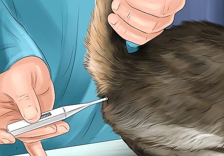 Take your pet's temperature. If you notice nasal discharge and accompanying symptoms, take your cat's temperature. For the most accurate reading, purchase a rectal thermometer at a pet store or online. Normally, your cat's temperature should be between 100.5–102.5 °F (38.1–39.2 °C). If you get a reading of 104 °F (40 °C) or more (indicating a fever), contact your vet immediately.