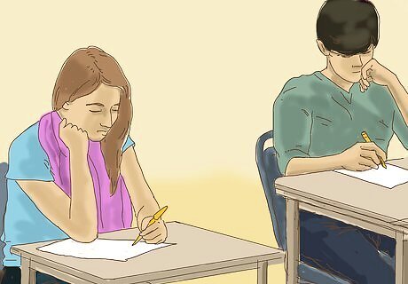 Engage in positive self-talk right before the test. Anxiety can hamper your performance. Before your test, take a few deep breaths in and out. Then, try telling yourself, “I'm ready for this test. I have studied hard, and I know this information!” This will help calm your nerves and reduce your stress, which in turn can affect your performance.