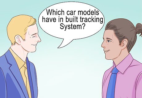 Contact local car dealerships. If you're looking for a new car, consider buying a car with a built-in tracking system. Visit car dealerships and ask salesmen about models that offer tracking systems and the benefits of different models. Ask the employees if you can try the model out before you buy it. Some retailers will let you drive around and see how the tracker works.