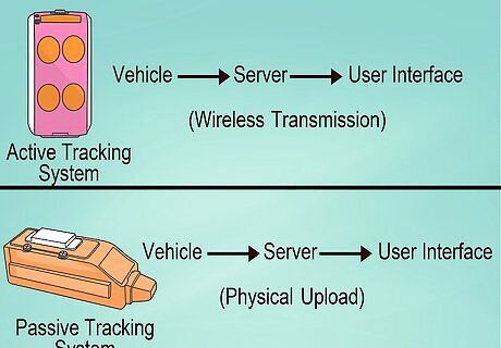 Choose whether you want an active or passive tracking system. Passive tracking systems store location, speed, and other information while on the road. Once the vehicle returns to a predetermined point (like your house), you can remove the device and download the information on your computer. Active tracking systems collect the same information but will transfer the information online in real-time. Many vehicles combine active and passive abilities: you might view its location in real-time and have an option to download speed, stops, and specific details after the vehicle has stopped.