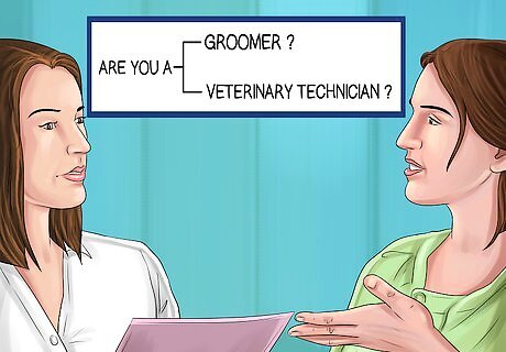 Talk with your veterinarian or those at your local animal hospital. Many dog walkers work part time at animal hospitals or as veterinary technicians, so those can be good places to start in your search for a qualified dog walker. Additionally, if you choose a dog walker from a business or practice you frequent, you could already have an established relationship with them.