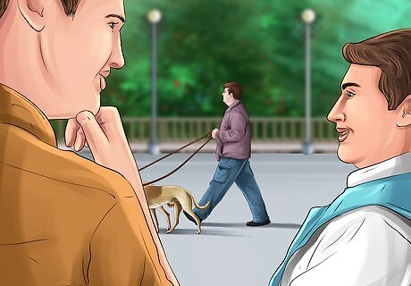 Go to a local dog park. While many dog parents are present at the dog park, dog walkers will be there as well. Frequent a nearby dog park often and strike up conversations with dog walkers whose style you admire. Ask if they are taking new dogs. Some possible questions to ask include, “How many dogs do you typically walk in a day?” “Do you specialize in any particular breed or geographic location?” “How long have you been a dog walker?”