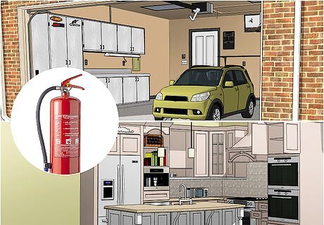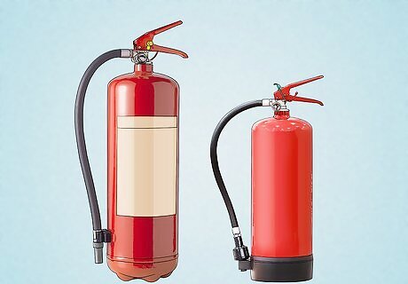 Choose appropriately sized extinguishers. Take into consideration where they will be stored, who will be using them, and the potential size of the fires in that location. For example you may want a larger extinguisher in a garage which contains a large volume of flammable substances, whereas a smaller one may be appropriate for use in a small cooking fire. Remember that children may have difficulty using a heavier extinguisher. Rather than having one large extinguisher, consider having multiple smaller ones. That way, not only can you have a broader selection of types (if you choose), you may have a better chance that one of them will actually work, when pressed into service during an emergency.