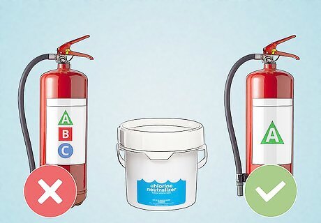 Know the risks of choosing the wrong type of extinguishers, assuming that someone trying to help may accidentally grab the nearest unit without knowing the trade-offs or dangers. Some types of extinguishers may be hazardous to your health if misused or abused. A CO2 extinguisher puts out a jet of gas at over 100 degrees below zero. In the wrong hands, this could cause serious and instantaneous injuries. CO2 and many "clean agents" are also asphyxiants that can push the air (and its oxygen) out of a closed space, making it impossible for people and animals to breathe. A multi-purpose ABC extinguisher should not be placed near oxidizers such as pool chemicals. Only type A water extinguishers should be used there. Where a type K extinguisher is installed, occupants should know that it is intended for the deep fryer fire and not for the waste basket fire. A CO2 extinguisher may be used outdoors, but you should be aware that its effects can literally blow away and the fire may quickly rekindle once you run out of CO2.