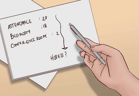 Figure out what the likely attendance for the conference will be. This will give you some idea of the total number of available rooms that the hotel will have to have for the event. If you’ve hosted this conference in the past, use historical data to come up with an average number of attendees. If people have already registered or expressed an interest in your conference, use these numbers to get this most accurate estimate possible. If you have access to a listserv of likely attendees, you can also send out an email asking people to say whether they’re interested or likely to attend the conference this year.