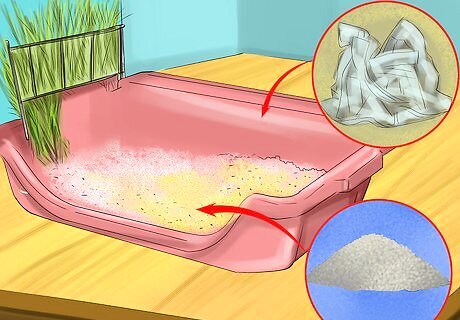 Give your rabbit a litter box. Most rabbits need a litter box, especially if they are an indoor rabbit. There are a variety of a litter boxes, so choose the best one that provide for your rabbit's housetraining needs. Start with a simple rectangular litter box. Choose a size that doesn't crowd the cage and still gives the rabbit plenty of space to hop around. Find a small, medium, large, or extra large litter box based on the size of you rabbit. Smaller rabbits may need a small litter box, since they may not be able to hop in and out of larger ones. Use newspaper between the litter and the box itself. This can help limit the amount of expensive litter you need to purchase. Watch to see if the rabbit chews the newspaper, since you may want to get rid of it if that's the case. Clean the litter box regularly. Negotiate how often to clean it, since a dirty litter box can turn off the rabbit from using it. However, if you clean the litter box too often, the rabbit may think he is not supposed to use the litter box.