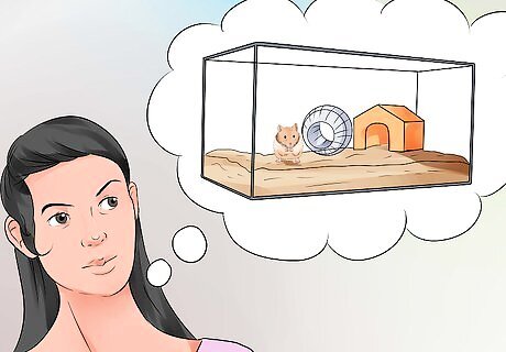 Consider the pros and cons of aquariums. Aquariums are not specifically made for hamsters, but could be an ideal housing option for your hamster. They are typically made of either solid glass or plexi-glass, which makes them very sturdy and easy to see through. To keep your hamster from escaping, the aquarium should be covered with a well-fitted mesh top. You may need to purchase this separately at your local pet store. The minimum size aquarium that you should have for your hamster is 30-40 gallons depending on the specific aquarium. Just be sure to have the floorspace be of the minimum size or bigger. An aquarium would be ideal if you have a dwarf or Chinese hamster. Aquariums have a few disadvantages, such as being heavy and having poor ventilation. Since aquariums are not hamster-specific, you would need to buy extra items to place inside of it, such as tunnels and ladders. EXPERT TIP Pippa Elliott, MRCVS Pippa Elliott, MRCVS Veterinarian Dr. Elliott, BVMS, MRCVS is a veterinarian with over 30 years of experience in veterinary surgery and companion animal practice. She graduated from the University of Glasgow in 1987 with a degree in veterinary medicine and surgery. She has worked at the same animal clinic in her hometown for over 20 years. Pippa Elliott, MRCVS Pippa Elliott, MRCVS Veterinarian Safety Notice: If you do choose an aquarium tank, never place it in full sunlight. An aquarium tank will quickly become overheated in direct sunlight and the resulting heat stroke can kill a hamster in as little as 20 minutes.