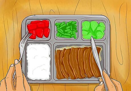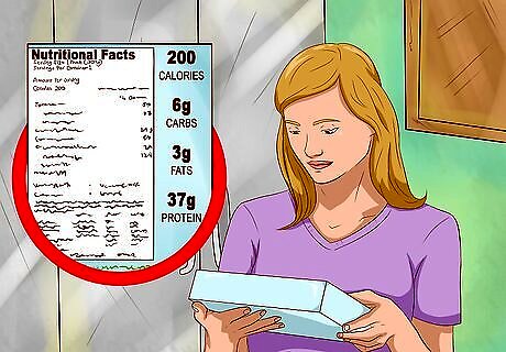 Select well-balanced meals. Purchase a frozen meal that has a variety of different foods to maintain a healthy and balanced diet. Things like whole grains, lean proteins, fruits, and vegetables are the healthiest options to go for. Eating a healthy and balanced diet stabilizes your weight and keeps you mentally and physically happy. Eat five portions of fruit and vegetables per day to get necessary nutrients into your system. Women should have 45 g of protein per day while men should have 55.5 g per day. Males should have 38 g of fiber per day and women should have 25 g on average. If you are trying to lose weight, having the right amount of protein is vital, as it helps you feel satisfied after a meal.